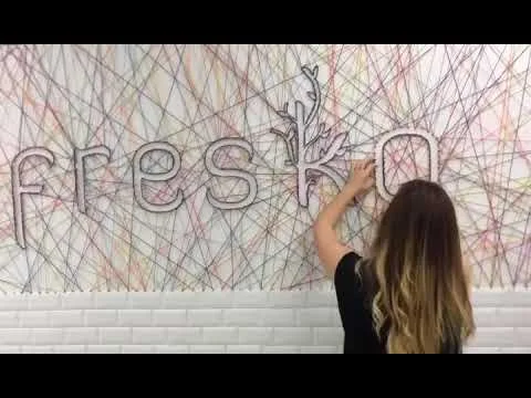 Handmade thread mural for Fresko Privé. Private area for events of the restaurant.